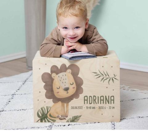 Une belle boite personnalisée en bois réalisée par un artisan dans laquelle Raphaël pourra y ranger tous ces plus précieux souvenirs d'enfance. Jouets, photos, vêtements, doudous, ect...