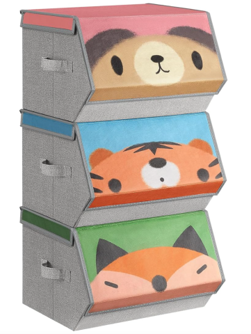 Boîtes de Rangement pour Enfant, Lot de 3, Empilables, Pliables, Poignées, Couvercle Magnétique.