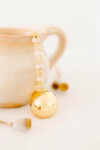 Notre bola de grossesse quartz rose Amour doré à l’or fin 18 carats célèbre la maternité. Tissez un lien unique avec votre bébé grâce à la douce mélodie de cet élégant collier de grossesse. Sa chaîne ornée de pierres naturelles de quartz rose, minéral du cœur, inspire le calme et la tendresse.