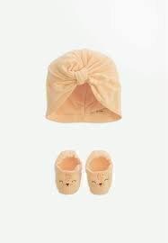 Notre joli bonnet est assorti à ses chaussons trop craquants. Dans un joli pêche, c'est l'ensemble parfait pour ajouter une touche de fraicheur tout l'été.