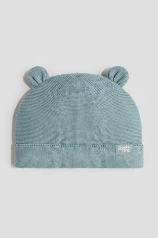 Bonnet en maille fine de coton doux avec petites oreilles appliquées et bord replié.
