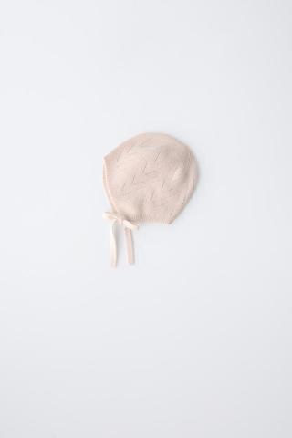 Bonnet avec cordons ajustables sur le devant. Tissu 53 % coton et 34 % laine.