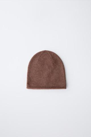 Bonnet en maille avec bas fini en bord tubulaire. Tissé avec 5 % de laine.