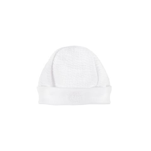 Couvrez la tête de votre bébé avec ce bonnet en jersey gaufré blanc et sa jolie broderie Théophile & Patachou. Idéal pour la maternité.