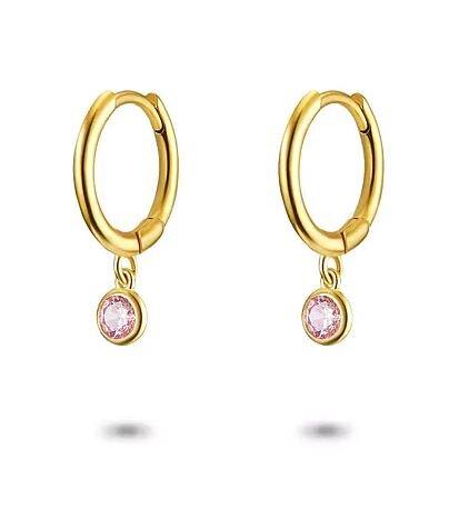Boucles d’oreilles en argent plaqué or 18ct, anneau, pendentif zircon rose, rond