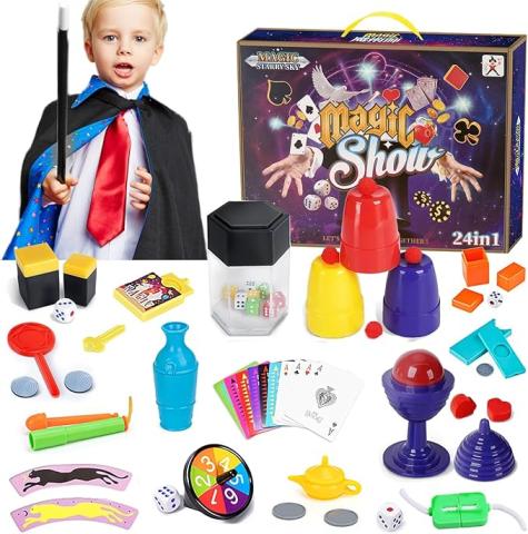 BOYIFEIJIE Kit de 75 tours de magie pour enfants à partir de 6, 7, 8 ans, avec baguette magique, chapeau magique et instructions (français non garanti) : Amazon.com.be: Jouets