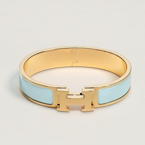 Bracelet fin en émail uni. Ce bracelet s'ouvre et se ferme grâce à un ingénieux fermoir à bascule qui révèle la forme d'un « H ».