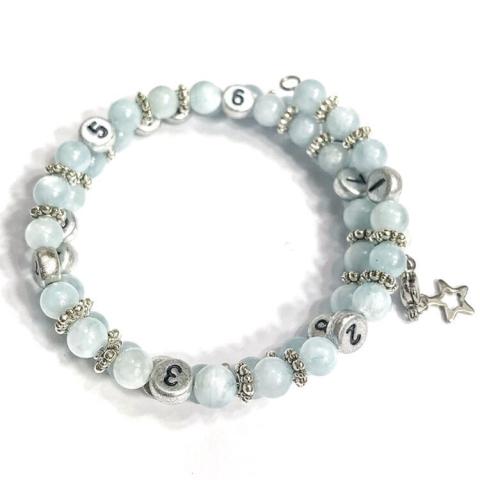 Bracelet d'allaitement et biberonnage en perles naturelles Aquamarine bleu IRREVERSIBLE - Maman N