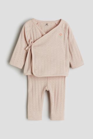 Ensemble en jersey pointelle de coton très doux, composé d'une brassière et d'un legging. Brassière avec fermeture croisée devant, maintenue par liens à nouer d'un côté et boutons-pression dissimulés ...