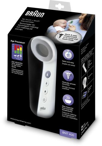 Thermomètre frontal qui peut être utilisé avec et sans contact. Il permet de prendre la température rapidement entre les sourcils. La technologie age précision permet de donner l'indicateur de fièvre en fonction de l'âge. Code couleur facile à interpréter. Dispose d'un mode silencieux.
