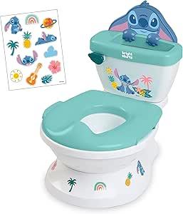 Bright Starts, Disney Stitch My Size Pot d'apprentissage 2 en 1 pour tout-petits avec son de chasse d'eau, protection anti-éclaboussures, siège amovible, comprend 12 autocollants, à partir de 18 mois : Amazon.com.be: Jouets