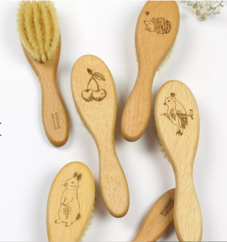 Monture en hêtre et des poils en soie qui vous permettront de coiffer bébé sans irriter son cuir chevelu.