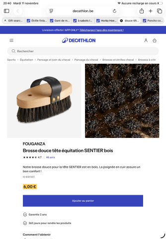 en toute liberté. Il est possible d'ajouter toutes vos envies cadeaux et de recevoir les dons directement sur votre compte. Avec les dons reçus, vous êtes alors libre d'aller acheter vos produits (comme ce 'Brosse douce tête équitation SENTIER bois FOUGANZA | Decathlon