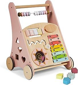 Buddy Baby Montessori Houten rollator voor eerste stapjes met speelgoed en activiteiten, wandelwagen voor baby's vanaf 12 maanden (Lapland/roze) : Amazon.com.be: Babyproducten