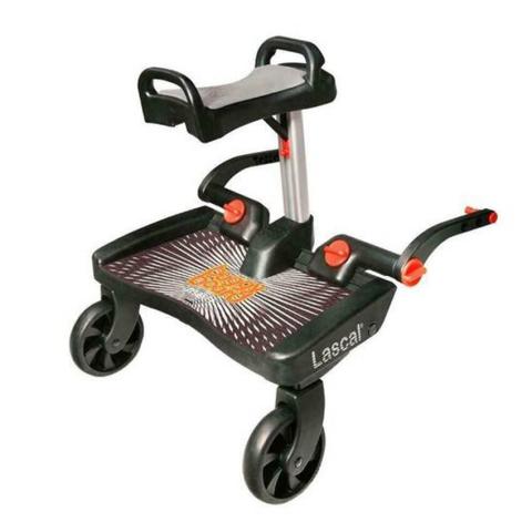 Fixé à la poussette, BuggyBoard Maxi est l'équipement parfait pour les sorties sans stress!