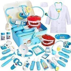 BUYGER Malette Docteur Enfant Jouet avec Déguisement de Docteur, Kit Medecin Outils Stetoscope Cadeau pour Garçon et Fille (Bleu) : Amazon.com.be: Jouets