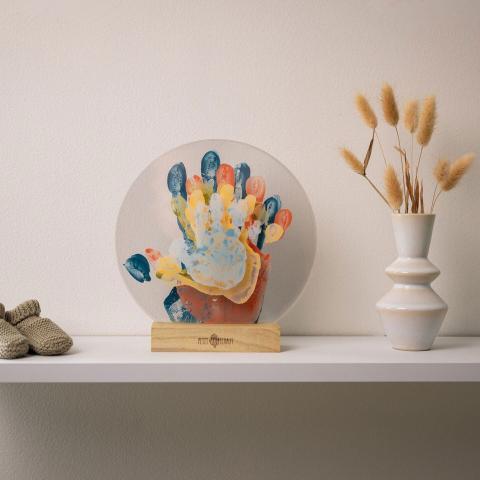 Le Family Colors permet à 5 membres de la famille d’apposer leur propre empreinte sur un panneau de plexiglas, créant par jeu de superposition un seul cadre coloré et personnalisé. Chaque kit comprend 5 panneaux transparents, 1 jolie base en bois pour support, 5 tubes de peinture, 1 rouleau pour application ainsi qu'un descriptif pour créer facilement les empreintes. Une façon mod