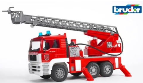 Camion de pompier avec vraie lance à eau pour Baptiste.