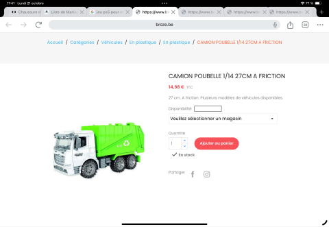Ce produit est extrait d'une liste de cadeaux (Anniversaire, Noël, ...) déposée sur Kadolog. Kadolog permet de créer des listes de cadeaux (Anniversaire, Noël, ...) en toute liberté. Il est possible d'ajouter toutes vos envies cadeaux et de recevoir les dons directement sur votre compte. Avec les dons reçus, vous êtes alors libre d'aller acheter vos produits (comme ce 'Camion poubelle ') où et quand vous le souhaitez.