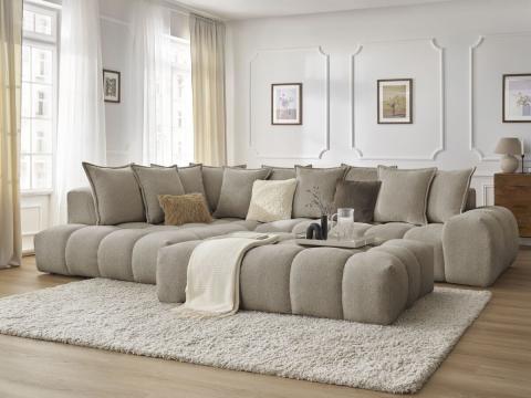 Canapé d'angle fixe avec pouf - pour des soirées cosy, bien accompagnés ou entre nous