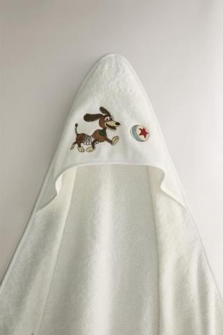 Cape de bain pour bébé confectionnée en coton éponge, ornée d'une broderie à l'effigie des personnages de Toy Story © Disney/Pixar.