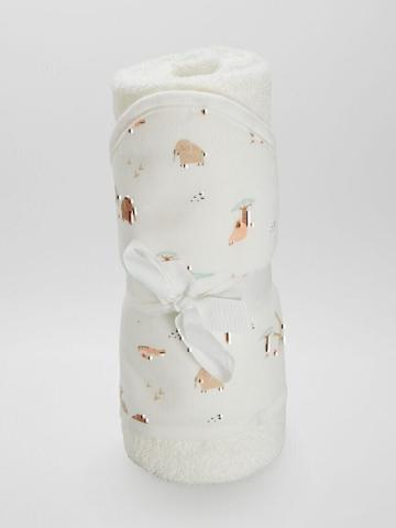Une jolie cape de bain avec des petits animaux, pour bébé à la sortie du bain.