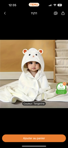 Ce produit est extrait d'une liste de naissance déposée sur Kadolog. Kadolog permet de créer des listes de naissance en toute liberté. Il est possible d'ajouter toutes vos envies cadeaux et de recevoir les dons directement sur votre compte. Avec les dons reçus, vous êtes alors libre d'aller acheter vos produits (comme ce 'Cape de bain ') où et quand vous le souhaitez.