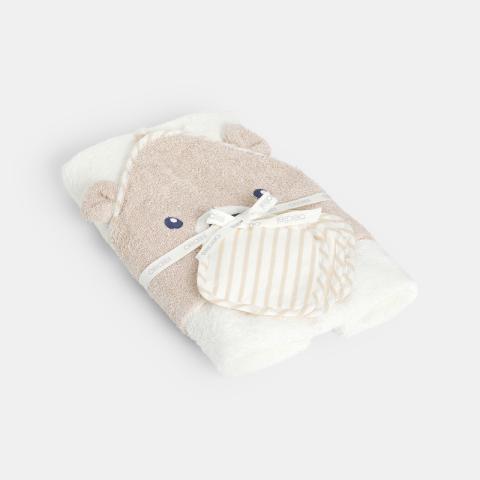 Quel plaisir de sortir du bain et de s'entourer de douceur avec cette cape de bain en éponge moelleuse. Sa frimousse d'ours amuse les petits ! Capuche intégrée et biais en coton rayé. 3 lingettes lavables pour la toilette. Dimensions : 1m x 1m