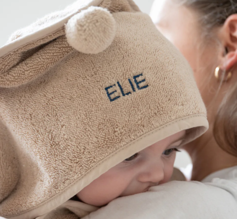 Matière extra douce, enveloppante et incroyablement moelleuse 100% Coton, au grammage de 450gr/m2 Petit pompon sur le haut de la capuche À personnaliser avec une broderie sur la capuche Coupe carrée (80 x 80 cm)