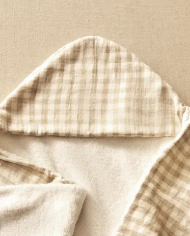 Cape de bain en gaze de coton lin et éponge pour garder notre bébé au sec.