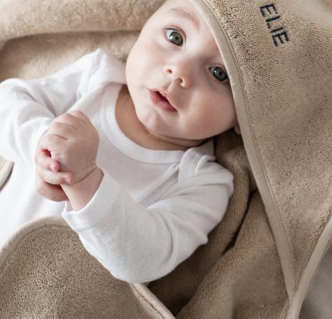 Cape de bain 100% Coton, au grammage de 450gr/m2 Certifié OEKO-TEX STANDARD 100® Matière extra douce, enveloppante et incroyablement moelleuse Petit pompon sur le haut de la capuche À personnaliser avec une broderie sur la capuche Coupe carrée (80 x 80 cm)