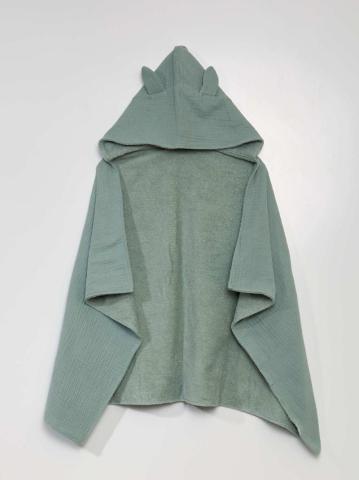 Une cape de bain trop mignonne avec des petites oreilles sur la capuche. - Cape de bain- 100% coton - Avec capuche fantaisie 'oreilles'- Couleur unie - Dimensions : 62 x 104 cm environ