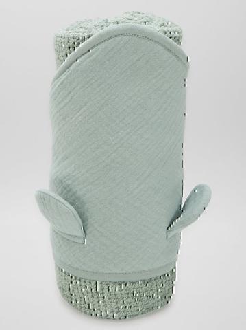 La cape de bain parfaite pour un moment de douceur et de confort après le bain. - Cape de bain - En éponge - Capuche en gaze de coton - Oreilles fantaisie sur la capuche - Dimensions : 64 x 104 cm environ