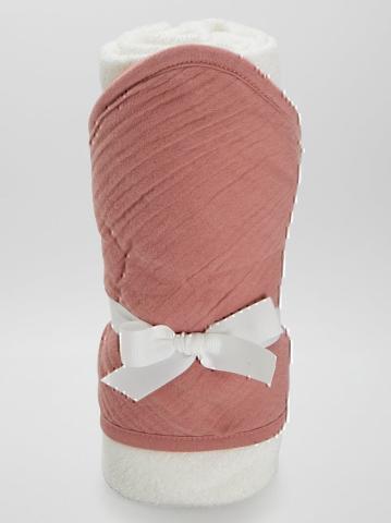 Une jolie cape de bain en éponge pour bébé à la sortie du bain.
