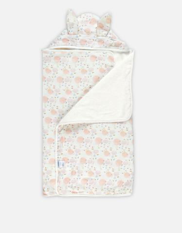 La cape de bain Lina & Joy en matière absorbante rose d'un côté et motif nature de l'autre est si douce et si mignonne, on adore! La cape de bain est parfaitement adaptée à votre bébé grâce à sa forme enveloppante et à sa capuche. Votre enfant restera bien au chaud à la sortie du bain et ne prendra pas froid.