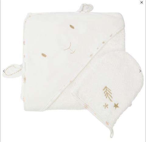 Ce produit est extrait d'une liste de naissance déposée sur Kadolog. Kadolog permet de créer des listes de naissance en toute liberté. Il est possible d'ajouter toutes vos envies cadeaux et de recevoir les dons directement sur votre compte. Avec les dons reçus, vous êtes alors libre d'aller acheter vos produits (comme ce 'Cape de bain et gant de toilette ') où et quand vous le souhaitez.