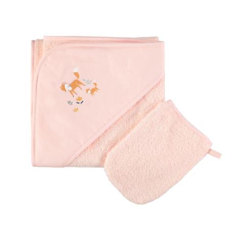 Cape de bain en éponge à capuche en jersey intégrée. Renards printés sur la capuche.