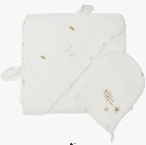 en toute liberté. Il est possible d'ajouter toutes vos envies cadeaux et de recevoir les dons directement sur votre compte. Avec les dons reçus, vous êtes alors libre d'aller acheter vos produits (comme ce 'Cape de bain et gant de toilette Hiver magique