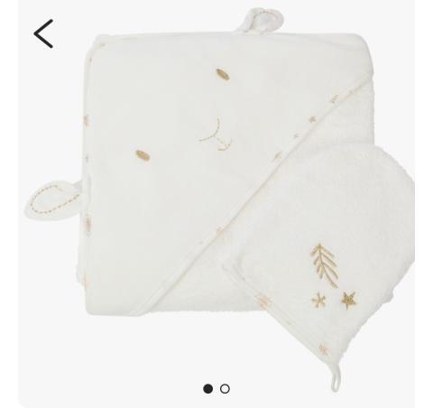 en toute liberté. Il est possible d'ajouter toutes vos envies cadeaux et de recevoir les dons directement sur votre compte. Avec les dons reçus, vous êtes alors libre d'aller acheter vos produits (comme ce 'Cape de bain et gant de toilette Hiver magique