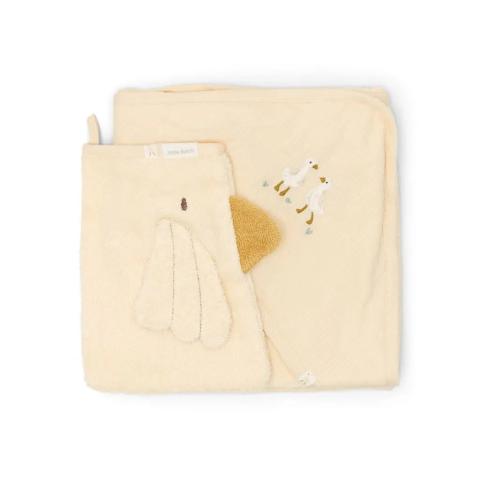 Ce coffret cadeau Moon & Stars Little Goose de Little Dutch est parfait pour le bain ! Avec un gant de toilette et une cape de bain adorables !