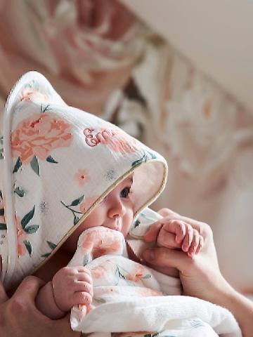 Belle et délicate comme votre bébé, cette jolie cape de bain recouvre votre petite princesse de roses à la sortie de l'eau, afin de la sécher tout en douceur. Pour la petite touche perso, vous pouvez faire broder so