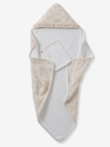 Une cape de bain et un gant de toilette tout doux pour envelopper bébé de douceur après le bain. Un cadeau de naissance idéal !