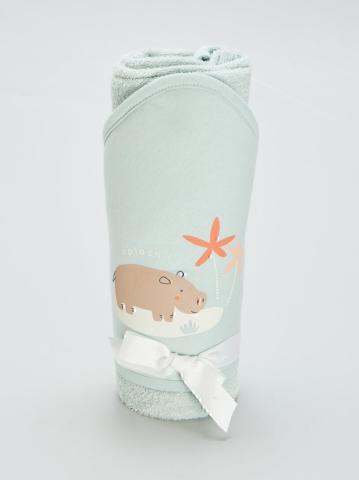 Une jolie cape de bain avec des petits animaux, pour bébé à la sortie du bain.- Cape de bain - 100% coton- Avec capuche- Imprimé hippopotame - 75 x 75 cm