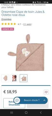 en toute liberté. Il est possible d'ajouter toutes vos envies cadeaux et de recevoir les dons directement sur votre compte. Avec les dons reçus, vous êtes alors libre d'aller acheter vos produits (comme ce 'Cape de bain Jules et odette