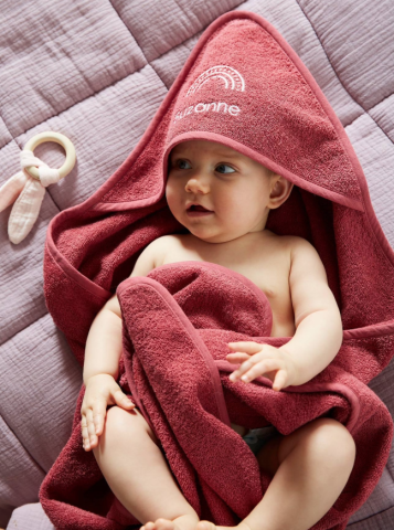 Une cape personnalisée avec son prénom qui viendra colorer sa sortie du bain.