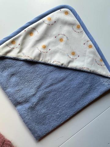 Cape de bain réalisée par Petits Bouts de Tissus (la boutique de Nina, la cousine de Baptiste).