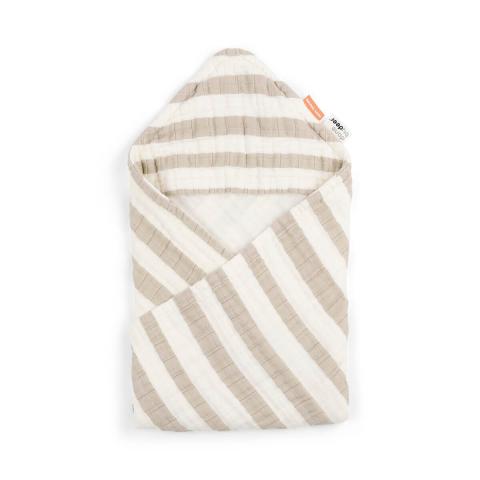 La serviette à capuche à larges rayures est parfaite pour envelopper et sécher votre enfant après un beau bain. La serviette en coton biologique multicouche est légère, douce sur la peau et sèchera rapidement lors d'une sortie à la plage. Utilisez la serviette fraîche et confortable à la maison, lorsque vous allez à de