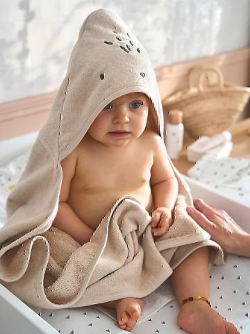 Une sortie de bain tout en douceur avec cette jolie serviette à capuche, couleur sable, 70*100