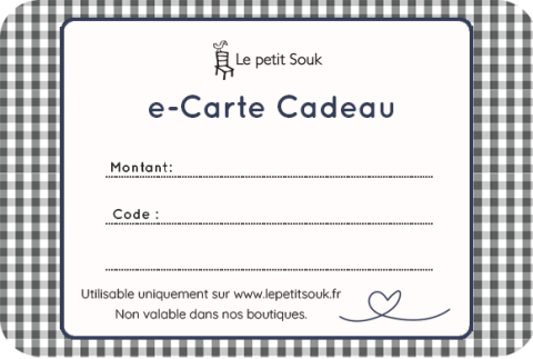 Ce produit est extrait d'une liste de naissance déposée sur Kadolog. Kadolog permet de créer des listes de naissance en toute liberté. Il est possible d'ajouter toutes vos envies cadeaux et de recevoir les dons directement sur votre compte. Avec les dons reçus, vous êtes alors libre d'aller acheter vos produits (comme ce 'Carte cadeau au Petit Souk Namur ') où et quand vous le souhaitez.