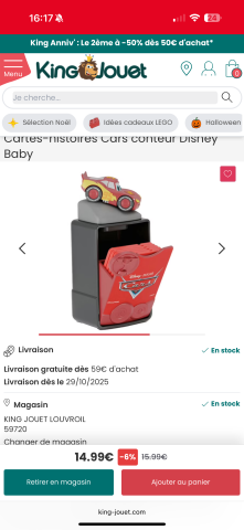 Ce produit est extrait d'une liste de cadeaux (Anniversaire, Noël, ...) déposée sur Kadolog. Kadolog permet de créer des listes de cadeaux (Anniversaire, Noël, ...) en toute liberté. Il est possible d'ajouter toutes vos envies cadeaux et de recevoir les dons directement sur votre compte. Avec les dons reçus, vous êtes alors libre d'aller acheter vos produits (comme ce 'Carte d’histoire Cars ') où et quand vous le souhaitez.